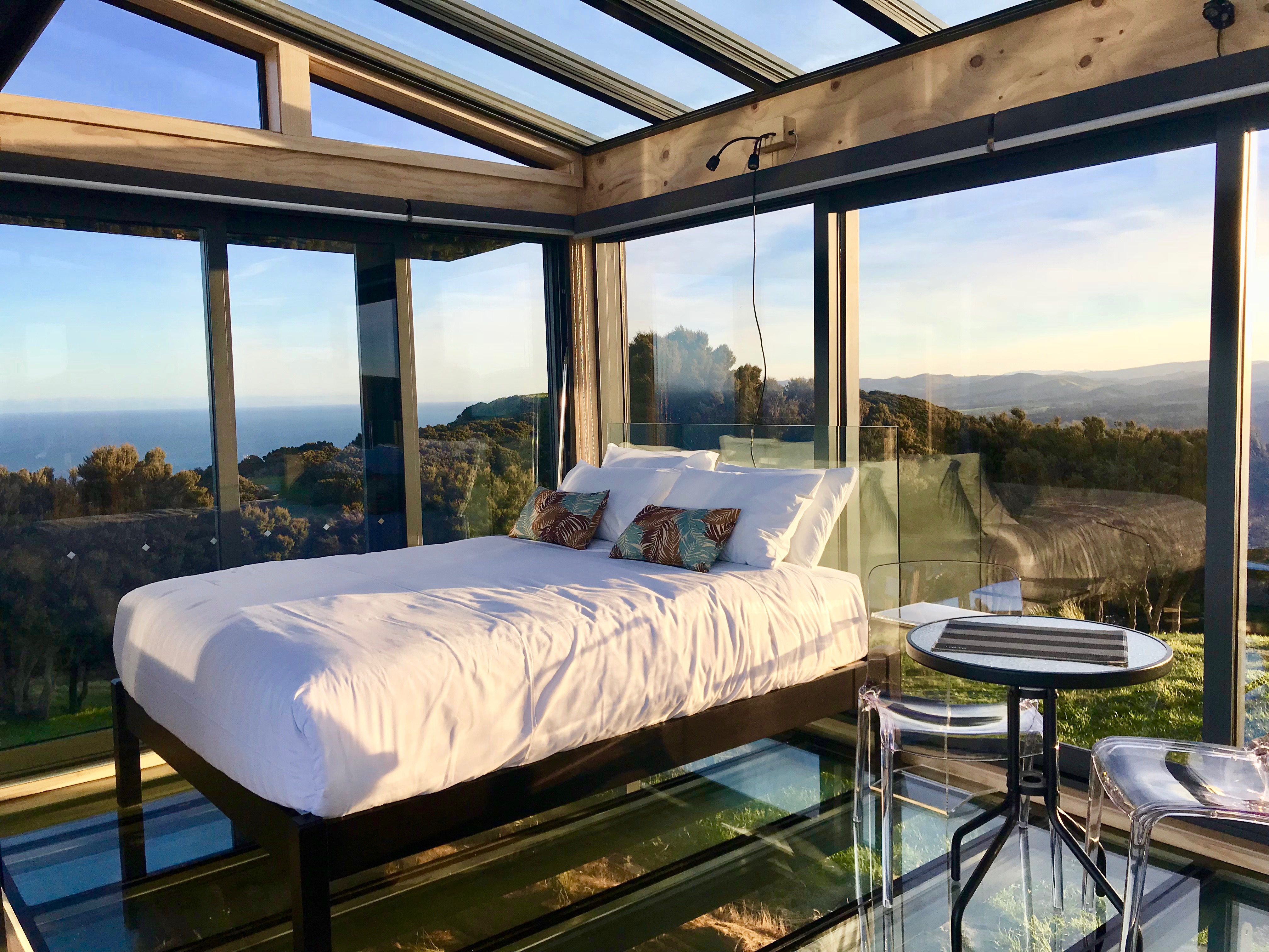 Atatu PurePod glass walls glass ceiling glass floor